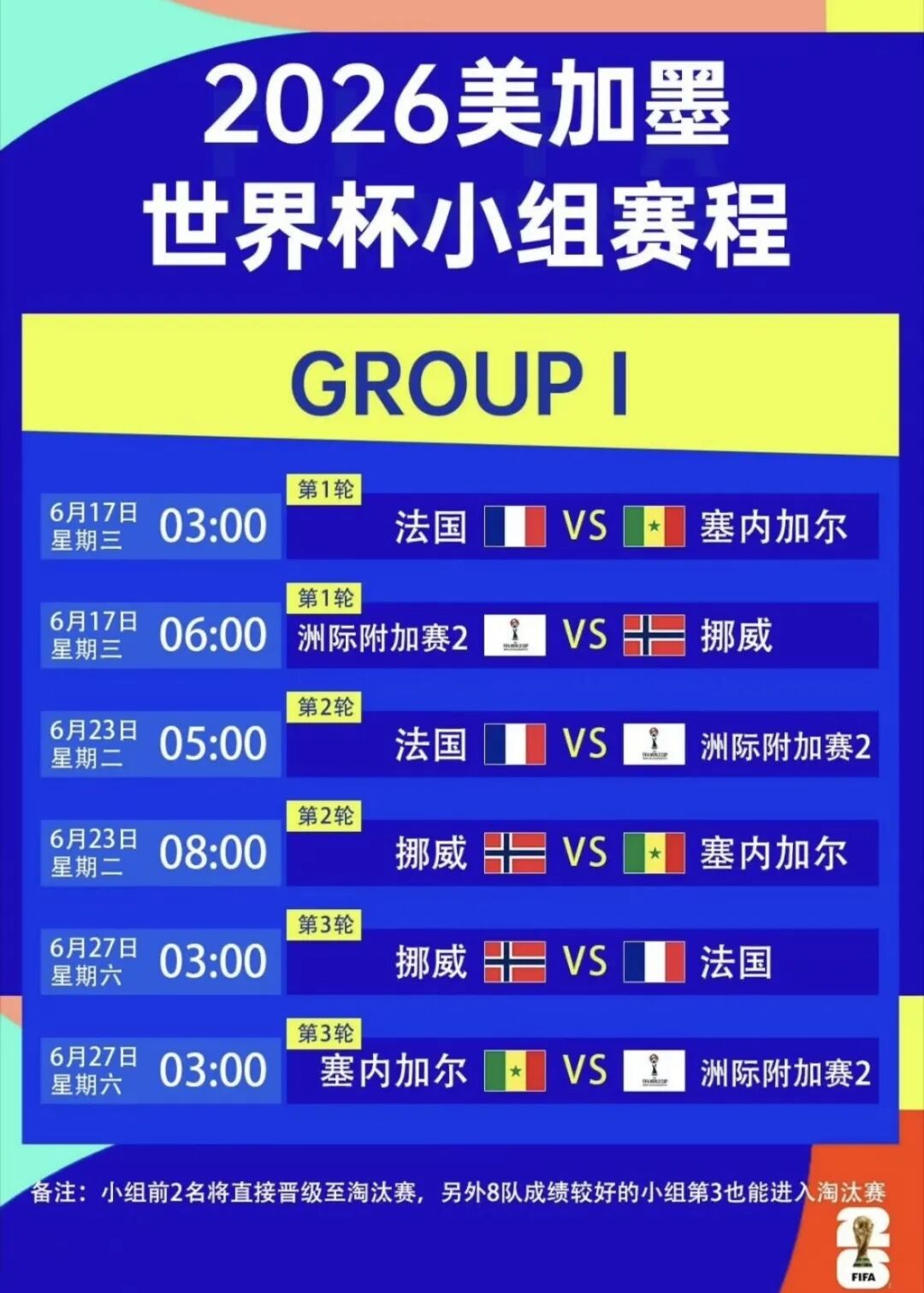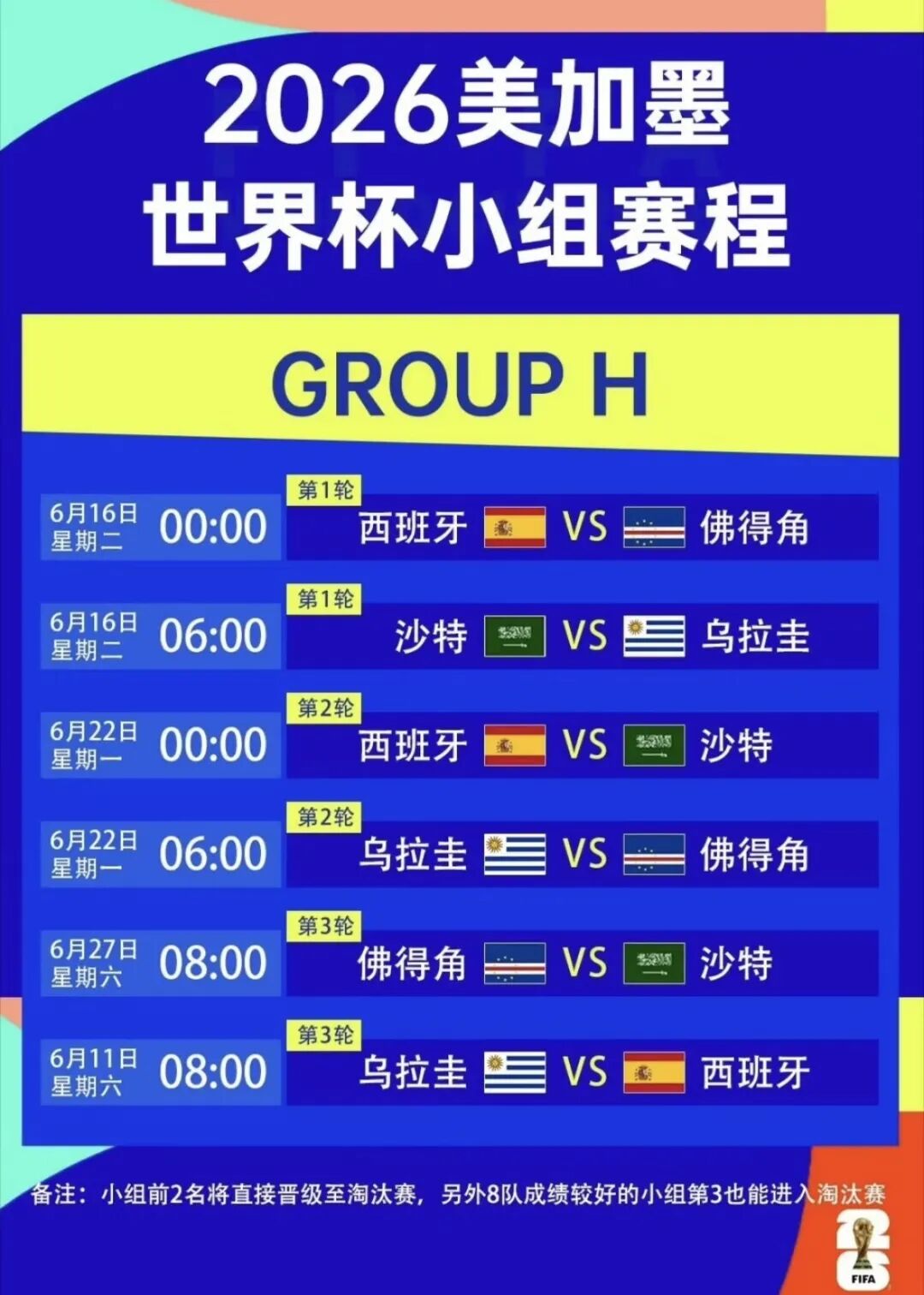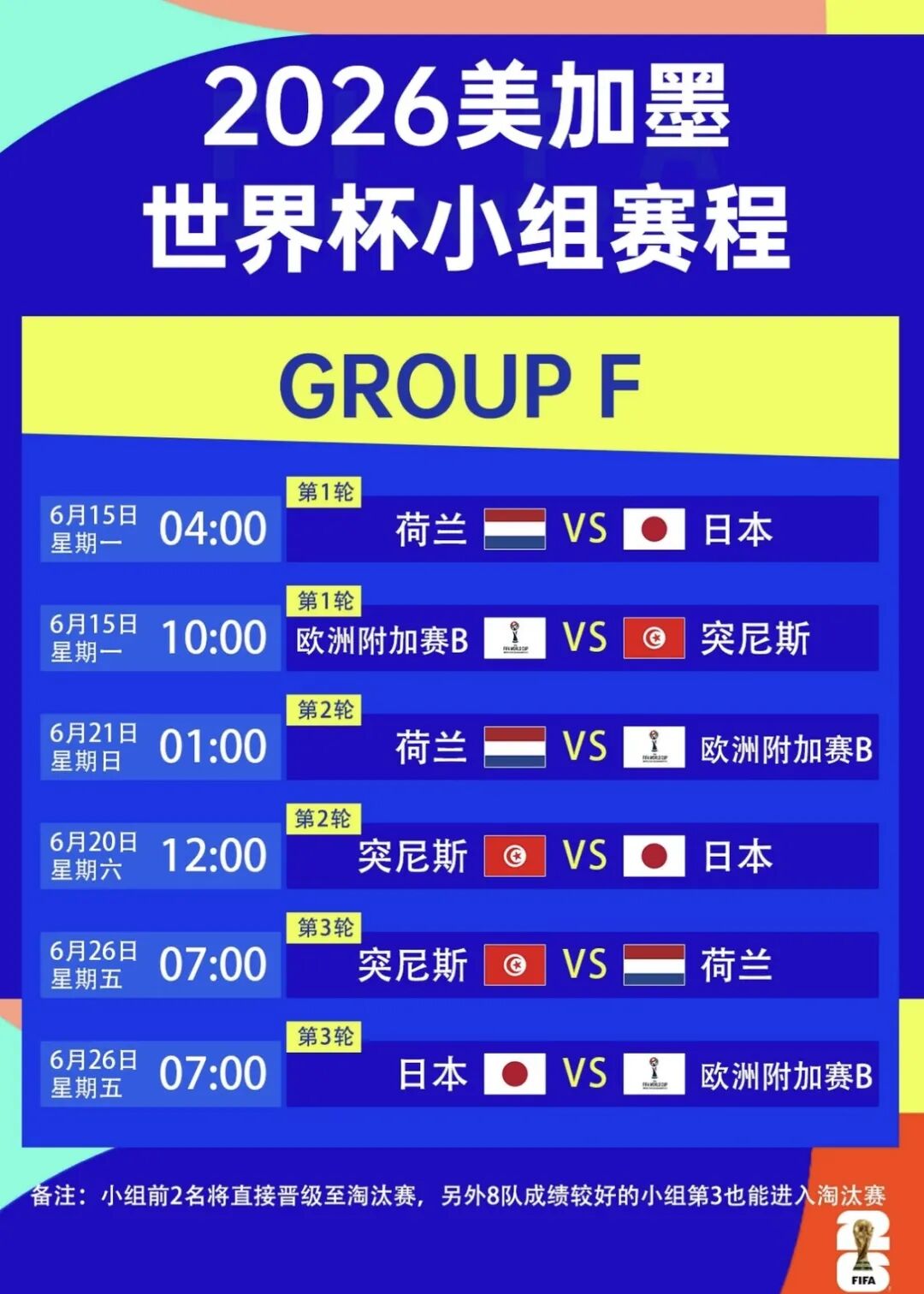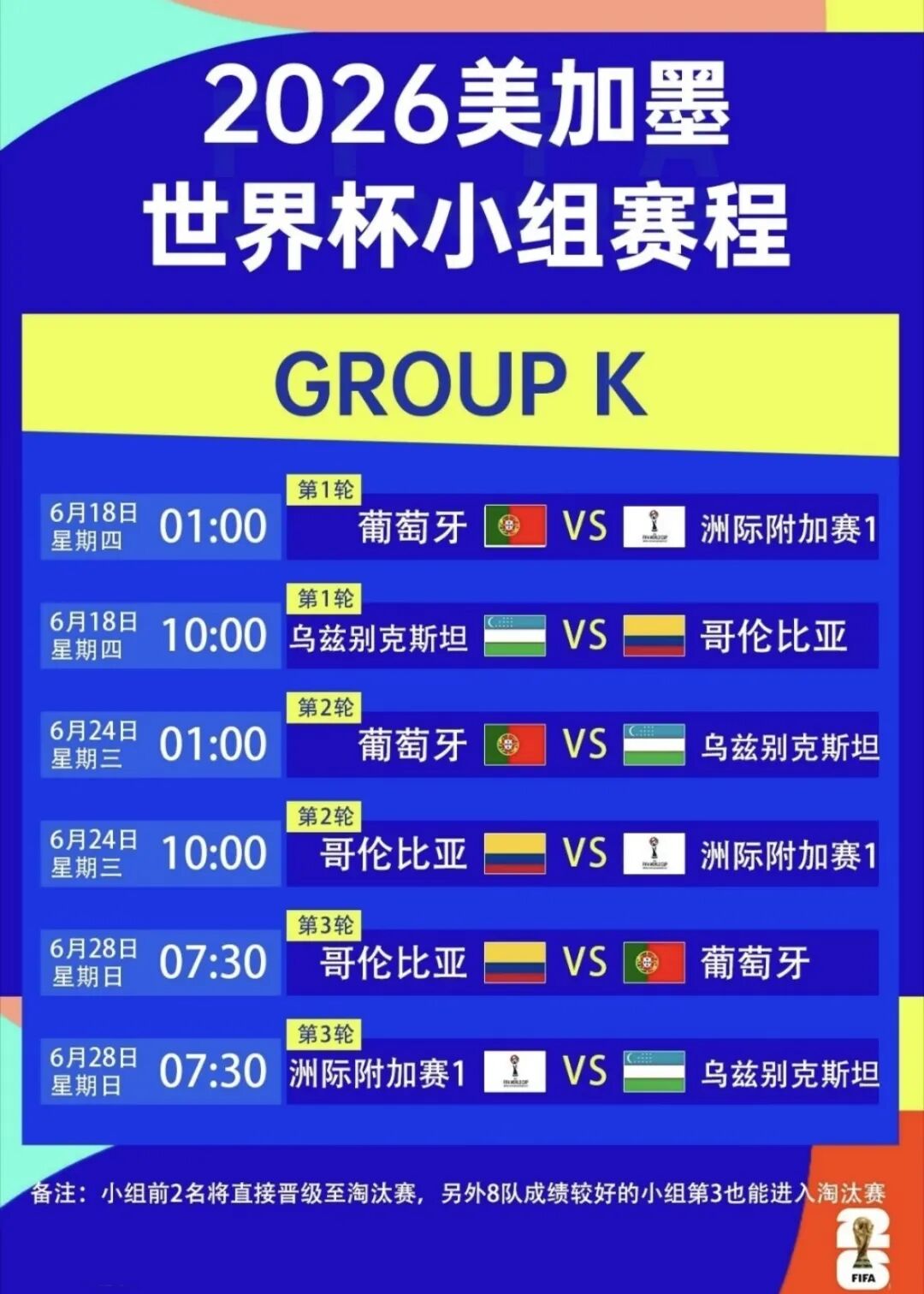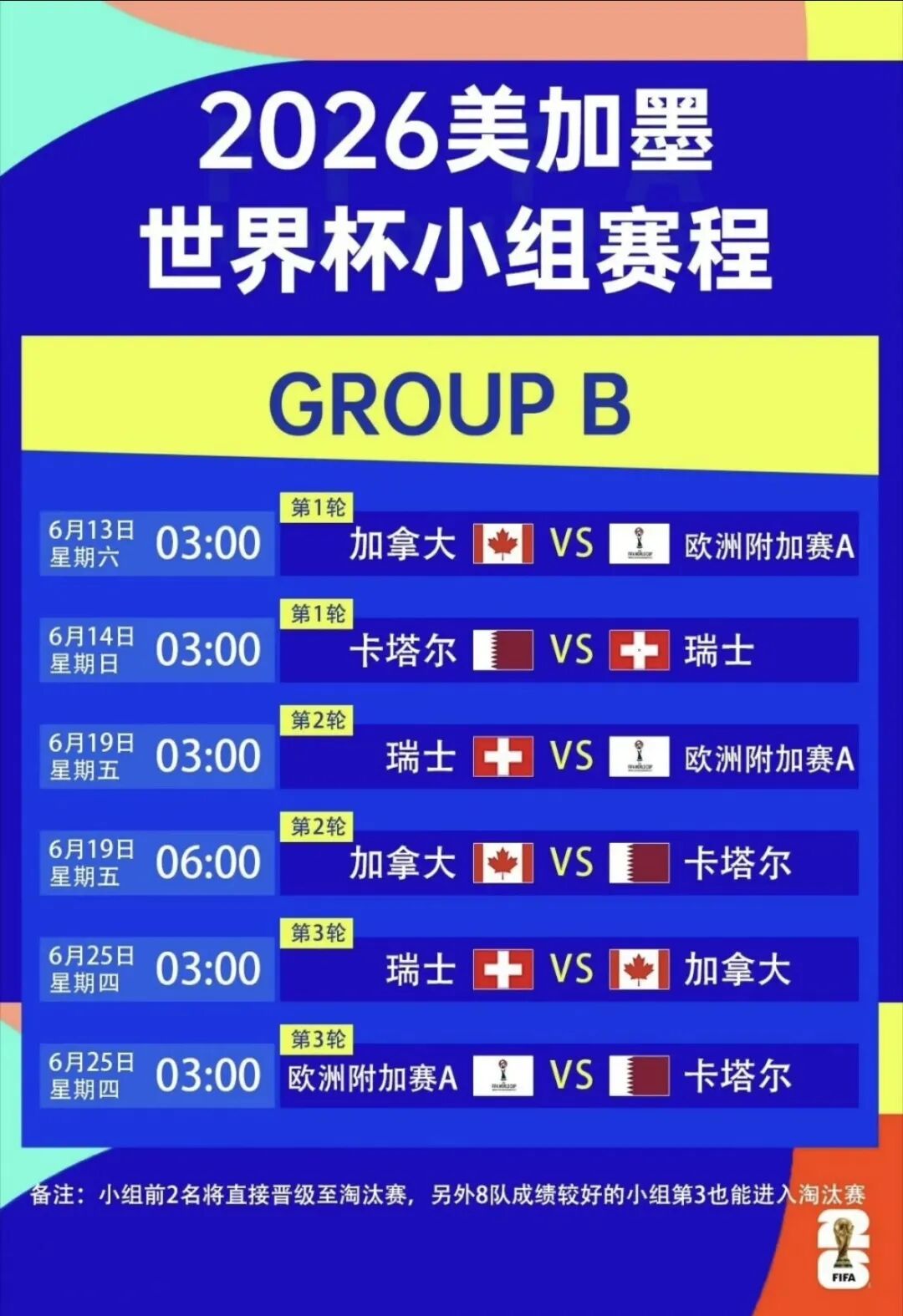 世界杯赛程表(右滑查看完整版)